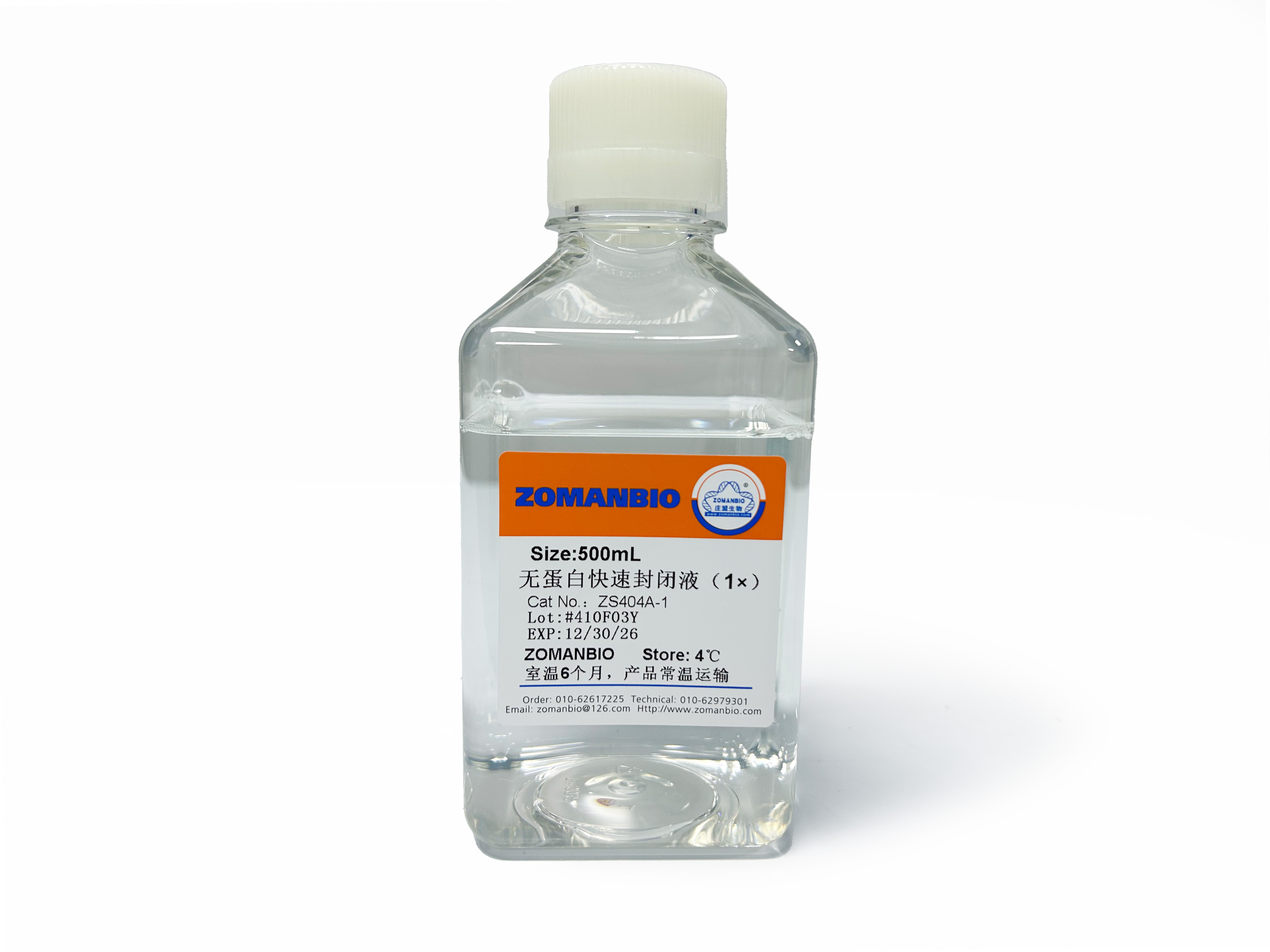 本品為Western Blot 轉(zhuǎn)印膜快速高效封閉液。采用無蛋白配方,10min即可快速高效地封閉膜上多余的結(jié)合部位,避免抗體與膜的非特異結(jié)合,最大程度地降低背景并提高信噪比。另外,本封閉液無內(nèi)源的磷酸化蛋白及生物素,對(duì)磷酸化特異抗體及生物素檢測(cè)也不會(huì)產(chǎn)生干擾。實(shí)驗(yàn)表明,本封閉液對(duì)許多抗體都有不同程度的信號(hào)增強(qiáng)作用,然而這種信號(hào)增強(qiáng)作用因抗體而異,對(duì)某一特定抗體,并不一定具有確定的信號(hào)增強(qiáng)作用。封閉液中不含有毒的疊氮化納或硫柳汞鈉等防腐劑,不會(huì)干擾HRP活性,安全系數(shù)很高,也不影響特異性磷酸化、乙?;?、甲基化抗體檢測(cè)。