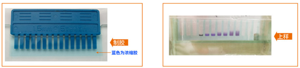 本產(chǎn)品為制備PAGE凝膠的預(yù)混配方,無(wú)需復(fù)雜配制,只需要1:1添加,再加入聚合催化劑---過(guò)硫酸銨溶液,即可凝膠。配膠過(guò)程中無(wú)需額外添加有臭味的TEMED,環(huán)保綠色。濃縮膠可以添加染料,使上樣孔更清晰,方便點(diǎn)樣。