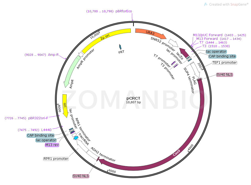 質粒序列可參考(具體以測序為準)下載:ZK107 pCRCT酵母編輯質粒.txt