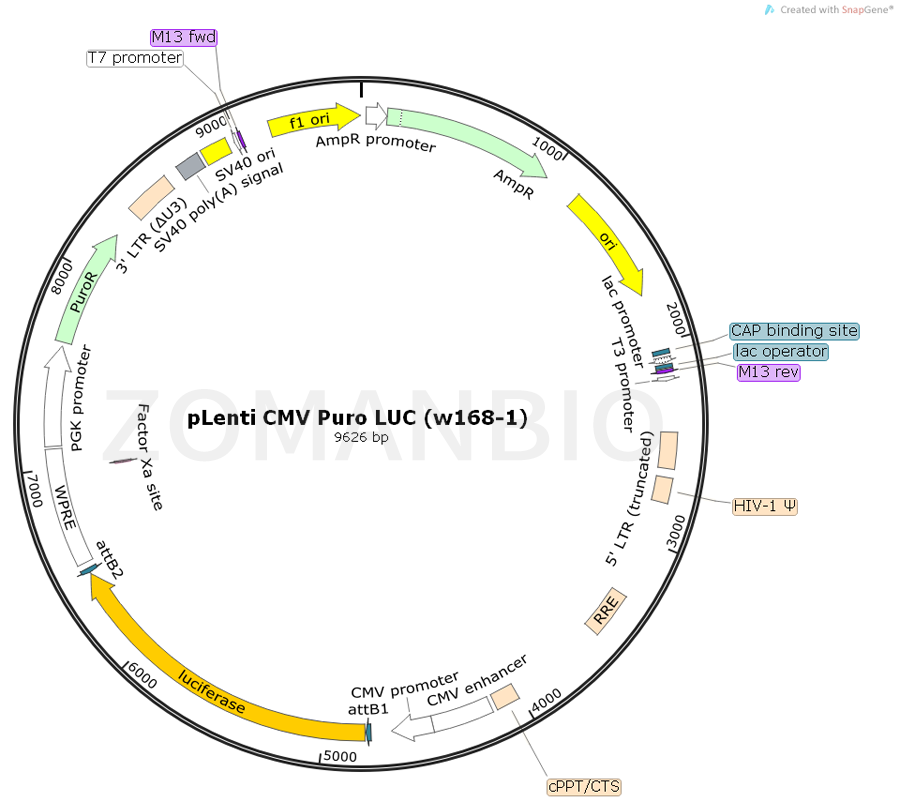 質(zhì)粒序列請下載:ZK805pLenti CMV Puro LUC (w168-1) 慢病毒表達(dá)質(zhì)粒.txt