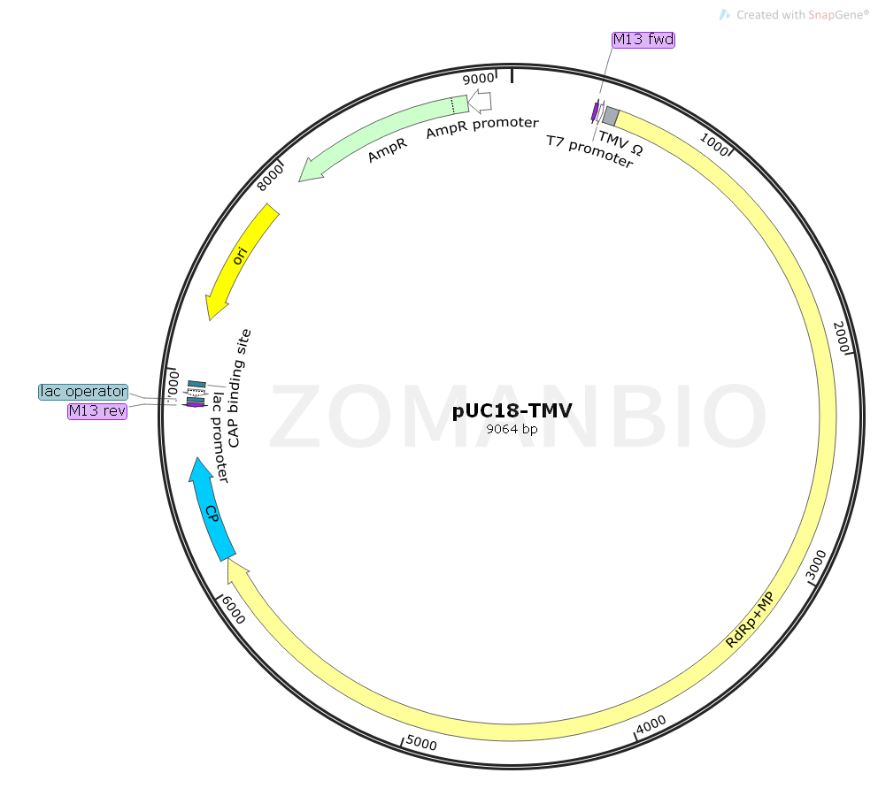 pUC18-TMV質(zhì)粒上有RdRp、MP、殼蛋白CP基因。