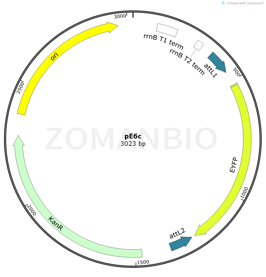 pE6c質(zhì)粒可以為GateWay反應(yīng)提供EYFP基因模板,還可以通過BamHI和NotI酶切位點連入目的基因,進(jìn)而和EYFP熒光基因一起導(dǎo)入到最終的表達(dá)載體,modified pENTR vector for C-terminal EYFP tag fusion with your gene of interest.