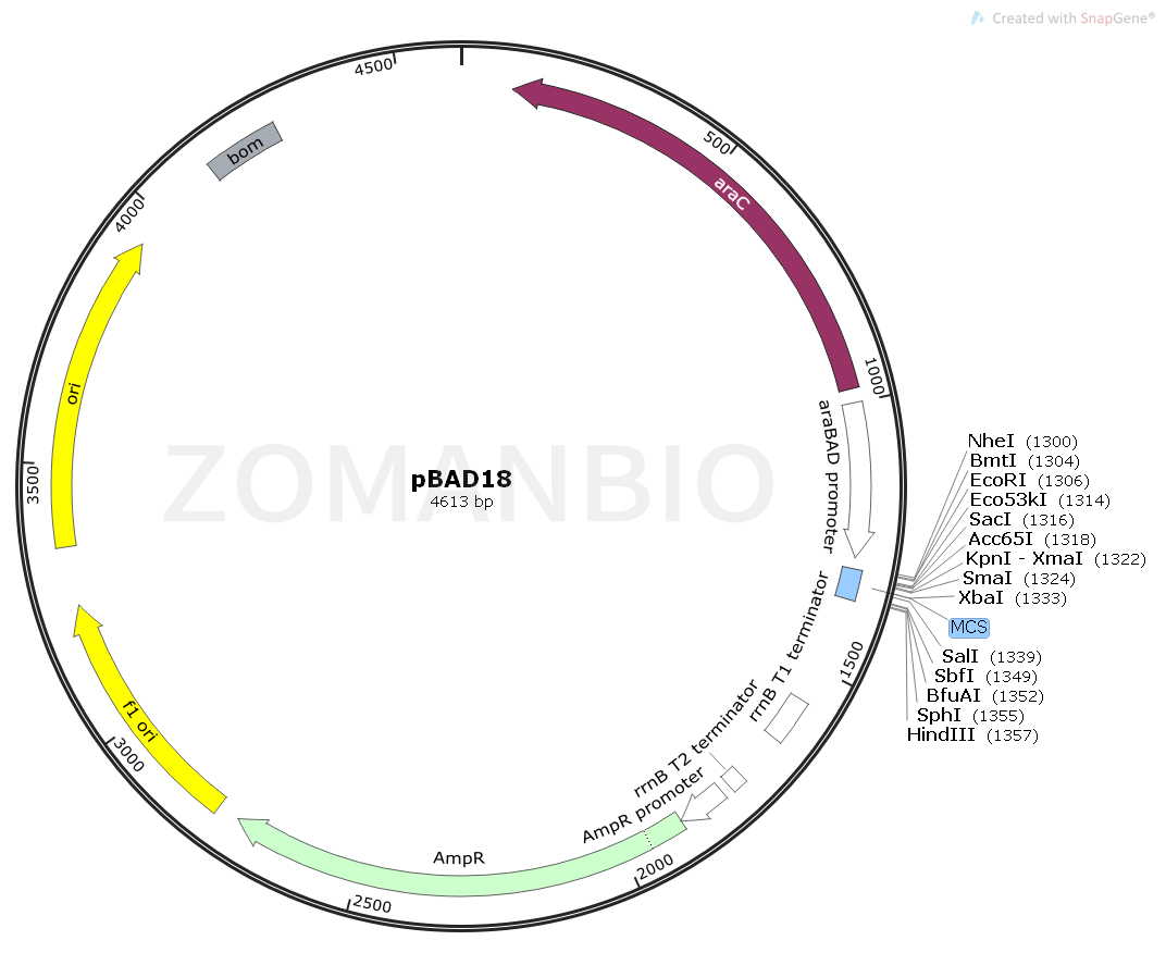 質(zhì)粒分類: | 大腸桿菌載體;pBAD系列表達(dá)質(zhì)粒 |