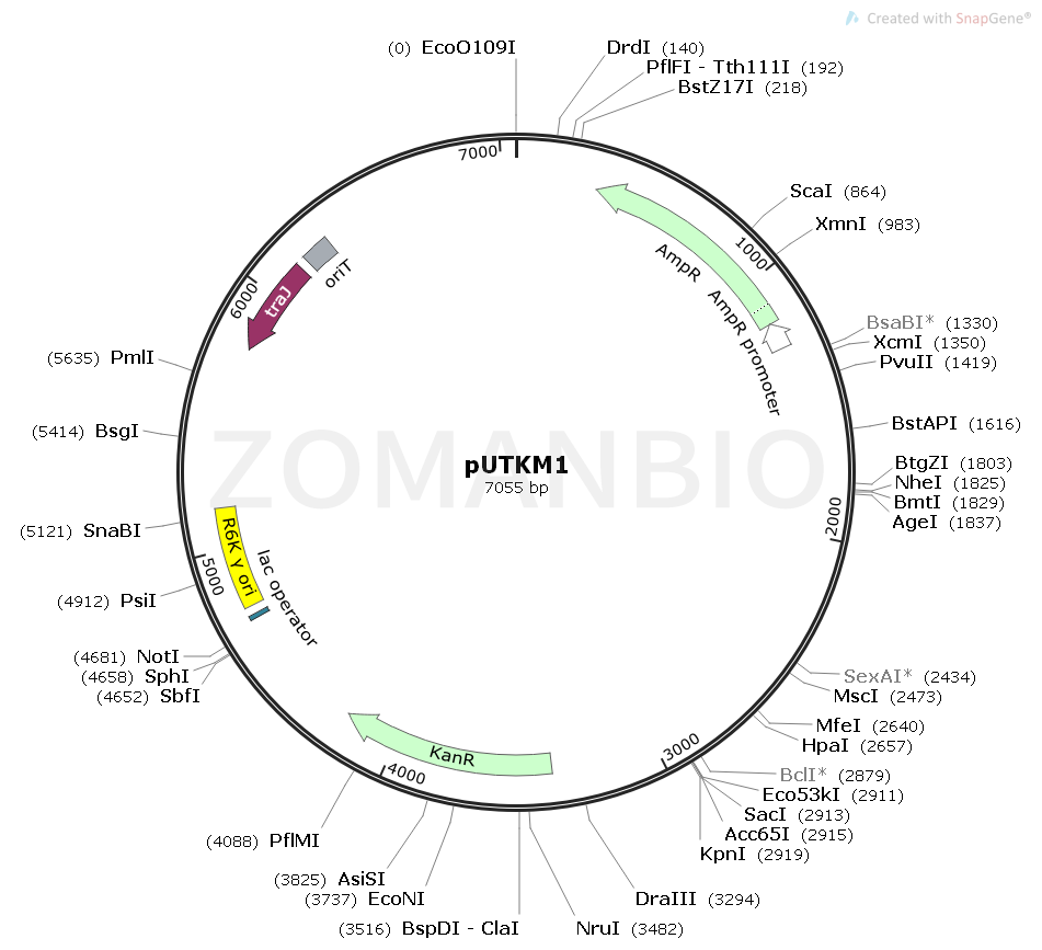 pUTKM1是一個(gè)大腸桿菌隨機(jī)轉(zhuǎn)座突變質(zhì)粒。
