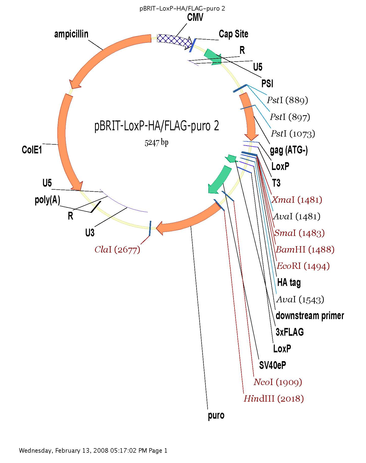 pBRIT HA-Flag是一個哺乳細(xì)胞逆病毒Loxp質(zhì)粒。
