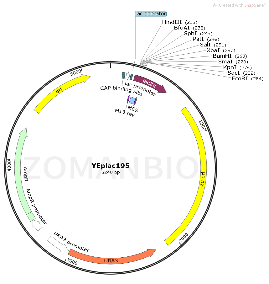 YEplac195是一個(gè)釀酒酵母表達(dá)質(zhì)粒。