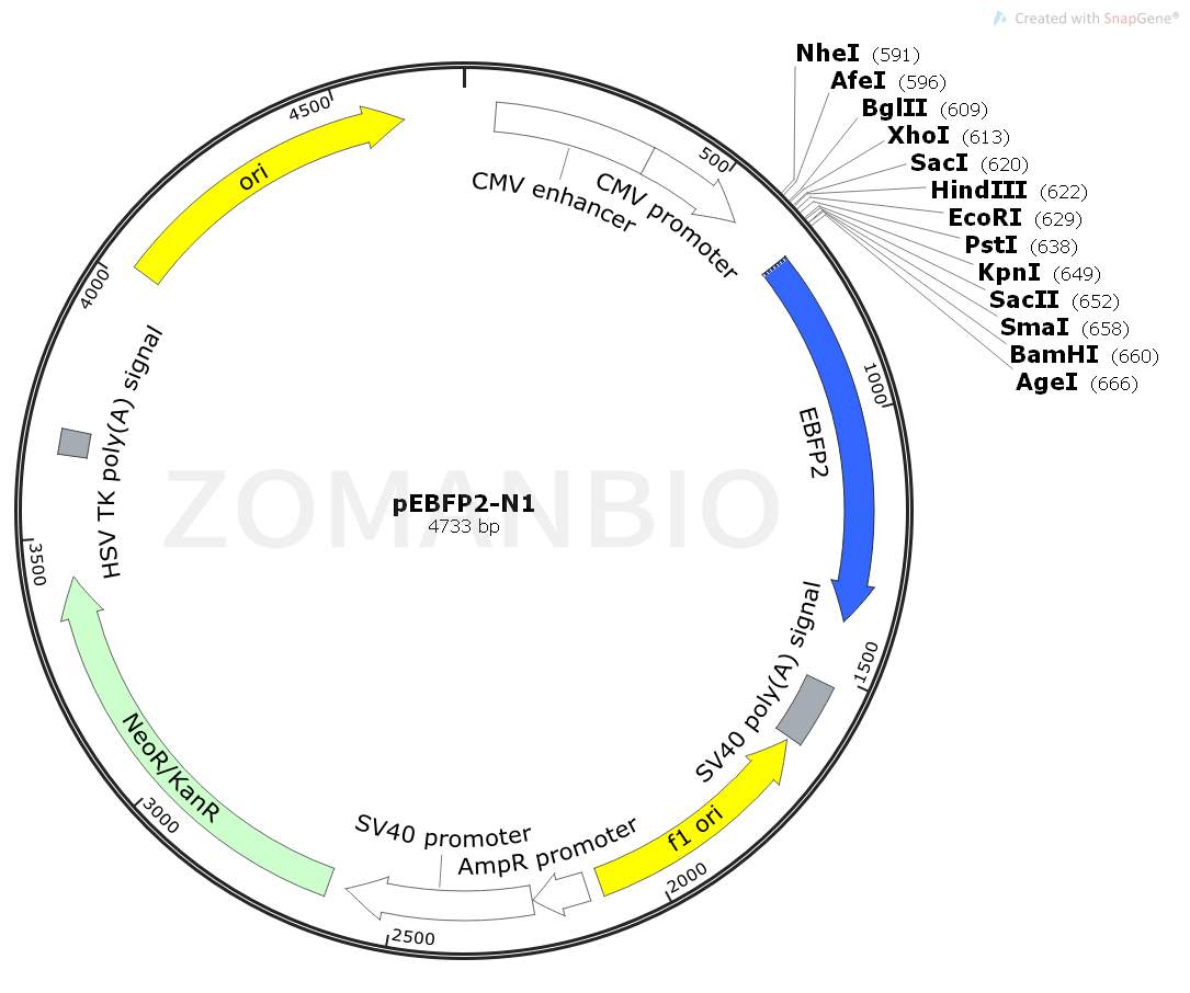 pEBFP2-N1哺乳熒光質(zhì)粒