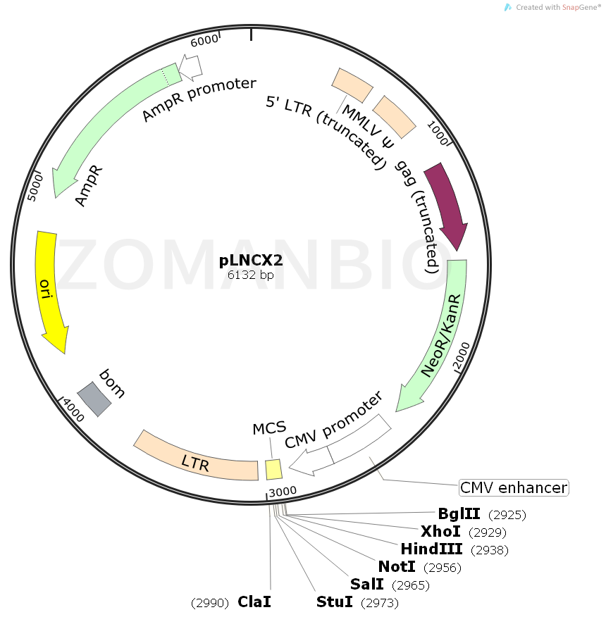 質粒序列請下載:ZK2053 pLNCX2慢病毒表達質粒.txt
